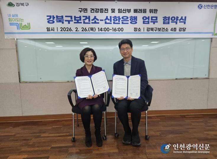 [인천광역신문] 관리자 기자 | 서울 강북구는 지난달 26일 강북구보건소 강당에서 신한은행 강북구청지점과 ‘구민 건강증진 및 임산부 배려를 위한 업무협약(MOU)’을 체결했다.