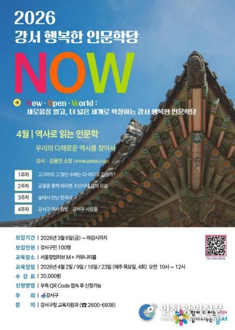 [인천광역신문] 관리자 기자 | 서울 강서구는 구민들이 역사와 인문학을 깊이 이해할 수 있도록 ‘역사 인문학: 우리의 다채로운 역사를 찾아서’ 강의를 운영한다.