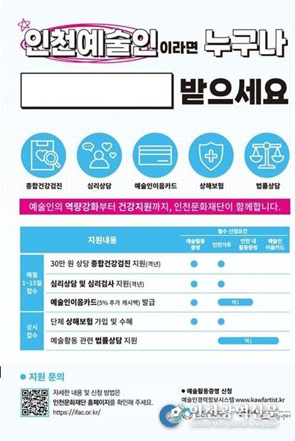 [인천광역신문] 관리자 기자 | 인천문화재단이 지역 예술인의 복지 향상을 위한 종합 지원을 추진한다.
