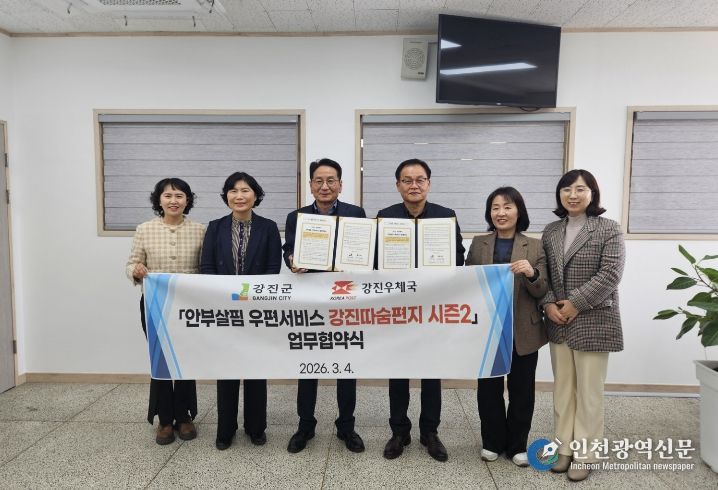 [인천광역신문] 관리자 기자 | 강진군이 작년에 이어 올해에도 행정안전부 공모사업 ‘2026년 읍면동 스마트 복지‧안전서비스 개선 모델 개발 지원사업’의 ‘안부살핌 우편서비스’ 부문에 선정돼 국비 1천만 원과 우체국공익재단 8백만 원을 포함한 총 2천 8백만 원 규모의 예산을 투입해 촘촘한 복지 안전망 구축에 나섰다.