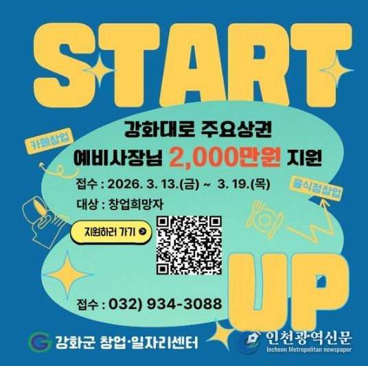 [인천광역신문] 관리자 기자 | 강화군 창업‧일자리센터(센터장 오윤근)가 강화대로 상권에 활력을 불어넣을 유망 창업자 발굴에 나선다.