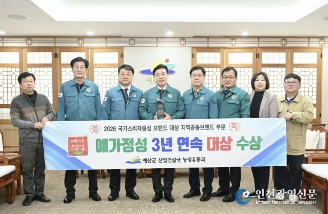 [인천광역신문] 관리자 기자 | 예산군 농특산물 공동브랜드 ‘예가정성’이 브랜드 인지도와 선호도 측면에서 소비자에게 높은 평가를 받아 3년 연속 ‘2026 국가 소비자중심 브랜드(지역공동브랜드 부문) 대상’을 수상했다.