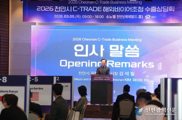 [인천광역신문] 관리자 기자 | 천안시가 지역 중소기업의 글로벌 판로 개척을 위해 추진한 ‘2026 천안시 C-TRADE 해외바이어 초청 수출상담회’가 가시적인 성과를 거두며 성황리에 마무리됐다.