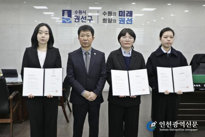[인천광역신문] 관리자 기자 | 수원시 권선구는 지난 5일, 권선구청 2층 집무실에서 신규 공직자 3명이 참석한 가운데 임용장 수여식을 개최했다.