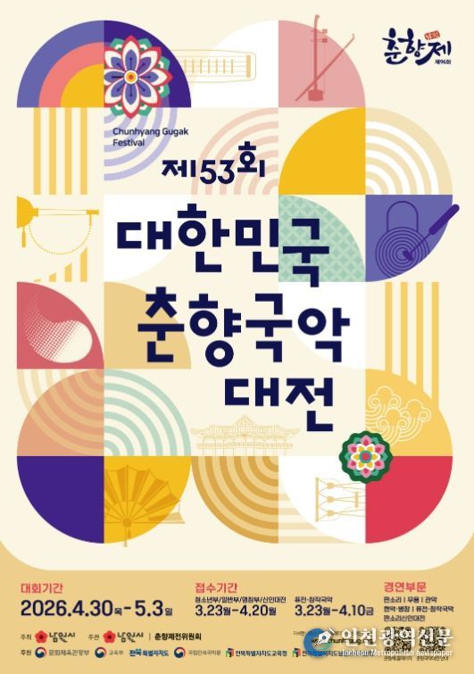 한편, 제53회 춘향국악대전의 상세 접수 일정과 세부 사항은 3월 초 남원시 누리집과 춘향제전위원회 누리집 등을 통해 공지될 예정이다.