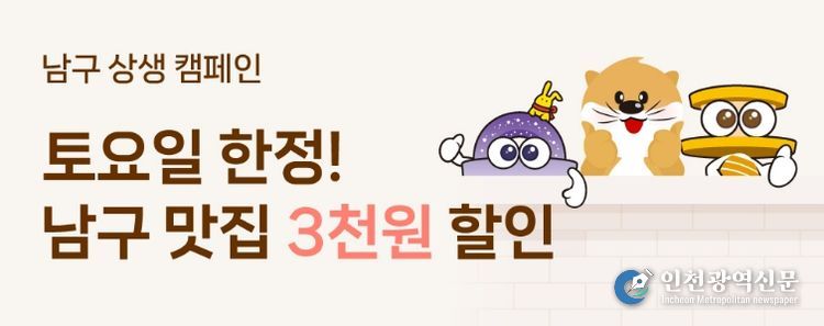 ‘토요일 N 남구데이’는 매주 토요일 대구로 앱을 통해 1만원 이상 주문 시, 3,000원 할인쿠폰을 제공하는 프로그램이다. 발급된 쿠폰은 남구에 위치한 ‘대구로’ 입점 업소에서만 사용 가능하며, 매주 토요일 오전 10시부터 쿠폰이 발급된다.