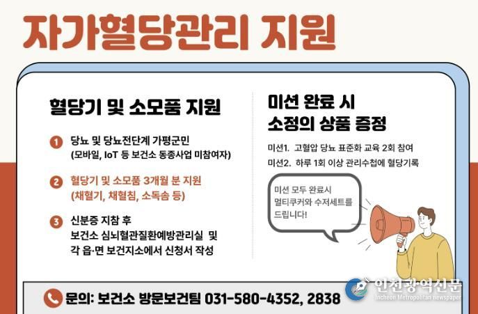 [인천광역신문] 관리자 기자 | 가평군보건소가 당뇨병 예방과 체계적인 관리를 돕기 위한 자가혈당 관리 지원사업을 본격 추진한다.