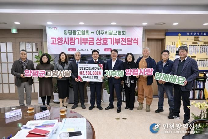 한편 양평군은 2024년부터 여주시 단체들과 고향사랑기부금 상호기부를 이어오고 있으며, 이번 기부를 포함해 총 5차례에 걸쳐 3,316만 원의 상호 기부가 이루어졌다.