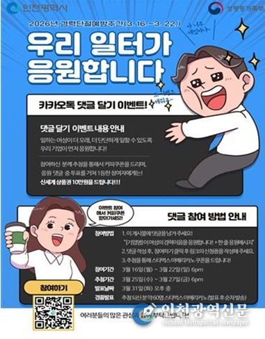 [인천광역신문] 관리자 기자 | 인천여성가족재단 인천광역새일센터는 2026년 경력단절예방주간(3월 셋째주)를 맞아 3월 16일부터 22일까지 “우리 일터가 응원합니다.” SNS 댓글 달기를 개최한다.
