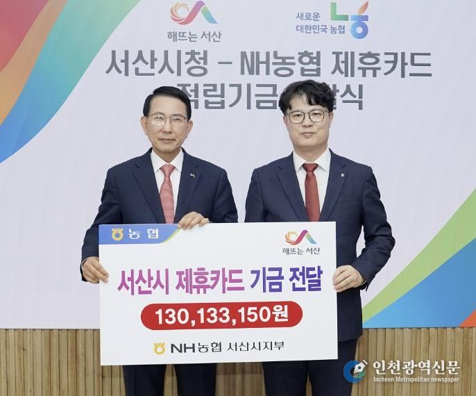 한편, NH농협은행 서산시지부는 2005년부터 서산시청과 협약한 제휴카드 포인트를 적립해 시에 지원하고 있으며, 그 누적 금액은 약 13억 1,100만 원이다.