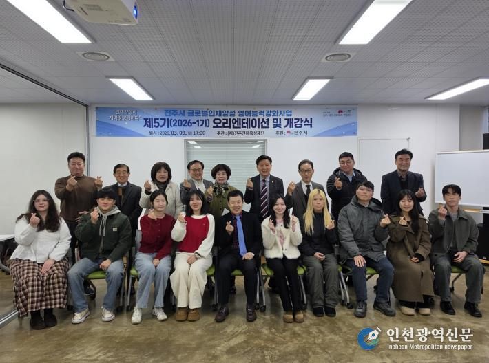 시와 (재)전주인재육성재단은 지난 9일 재단 사무실에서 ‘제5기(2026년 1기) 전주시 글로벌 인재양성 영어능력 강화사업’의 개강식을 가졌다.