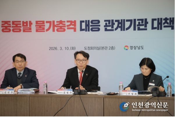 [인천광역신문] 관리자 기자 | 경상남도는 10일 오전 개최한 이란사태 비상경제 대책회의 후속조치로 지역 유류가격 인상 등으로 민생경제 충격을 완화하기 위해 같은 날 오후 시군 등 관계기관 합동 물가안정 대책회의를 개최했다.