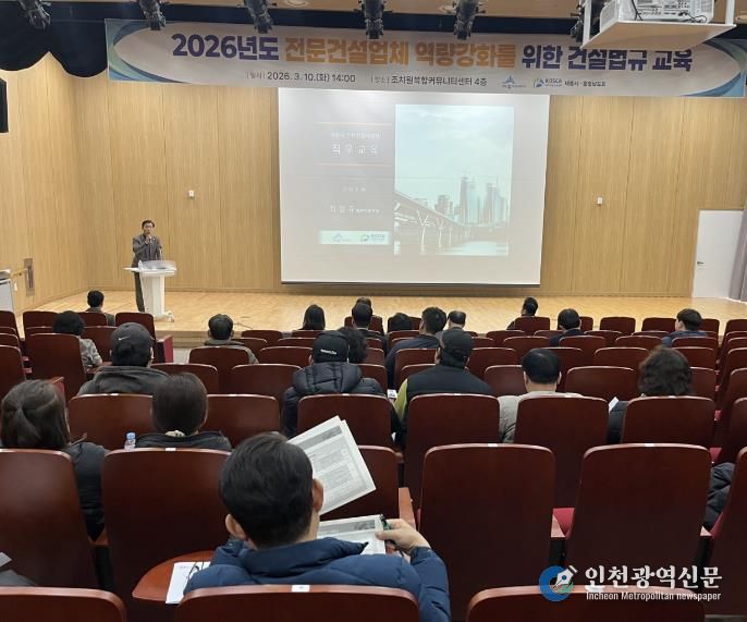 [인천광역신문] 관리자 기자 | 세종특별자치시가 지난 10일 조치원 복합커뮤니티센터에서 대한전문건설협회 세종시·충남도회 회원사 및 관계자를 대상으로 건설법규 교육을 진행했다.