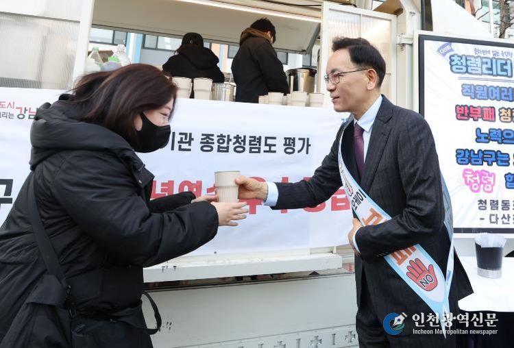 이번 캠페인은 강남구 청렴동호회 ‘다산회’가 주관했다. 다산회 회원들은 출근길 직원들에게 ‘청렴커피(차)’를 건네며 3년 연속 청렴 우수등급 달성을 함께 일군 직원들에게 감사의 뜻을 전했다. 동시에 부정부패와 갑질 근절, 공정하고 투명한 행정 실천 의지를 되새기는 현장 캠페인도 함께 펼쳤다.