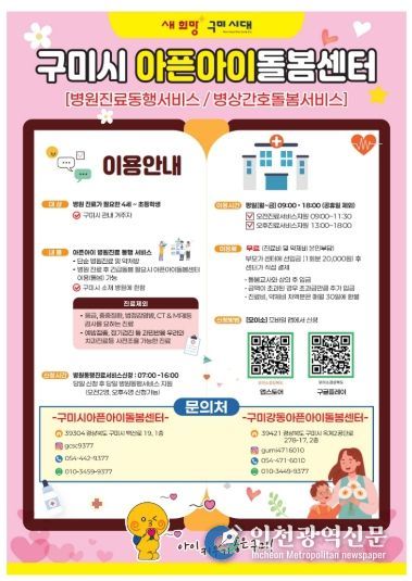 이용 신청은 경상북도 모바일 앱 '모이소'를 통해 당일 신청·당일 이용이 가능하다. 자세한 문의는 구미시아픈아이돌봄센터 또는 구미강동아픈아이돌봄센터로 하면 된다.
