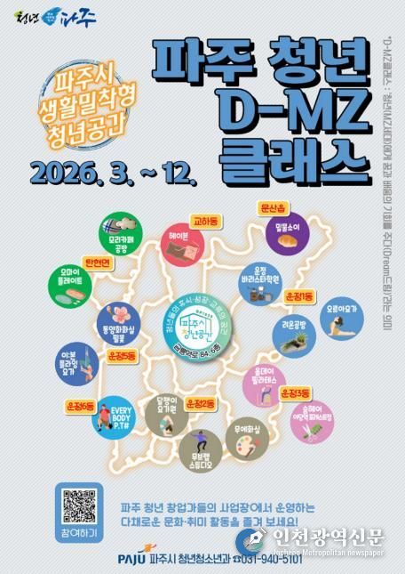 [인천광역신문] 관리자 기자 | 파주시는 2026 생활밀착형 청년공간 ‘파주 청년 디-엠지(D-MZ)클래스’참여자를 모집한다.