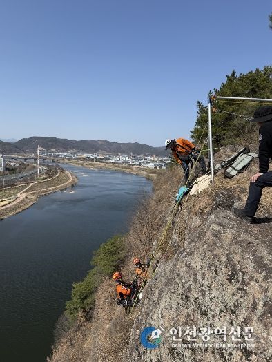 이번 훈련은 지반이 약해지는 해빙기에 발생하기 쉬운 암벽·절벽 추락 및 고립 사고를 가정하여 진행됐다.