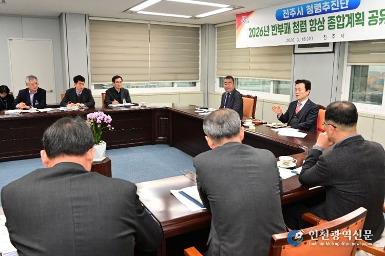 [인천광역신문] 관리자 기자 | 진주시는 18일 시장을 단장으로 부시장과 국·소장, 감사관으로 구성된 ‘청렴 추진단’이 참석한 가운데 ‘2026년 반부패 추진 계획 공유를 위한 청렴 추진단 회의’를 개최했다고 밝혔다.