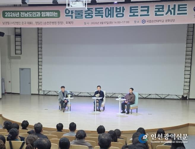 [인천광역신문] 관리자 기자 | 전라남도와 한국마약퇴치운동본부 전남함께한걸음센터는 약물중독예방 토크콘서트를 지난 17일 국립순천대학교에서 열고 마약 중독의 위험성과 회복 지원 방안을 논의했다.