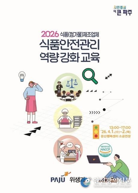 [인천광역신문] 관리자 기자 | 파주시는 관내 식품(첨가물)제조업체 영업자 및 종사자를 대상으로 녪년 식품안전관리 역량 강화 교육’참여업체를 모집한다.