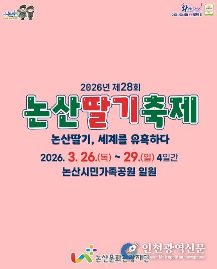 [인천광역신문] 관리자 기자 | 봄의 시작을 알리는 3월이면 생각나는 달콤한 ‘딸기’. 대한민국을 넘어 세계인의 입맛을 사로잡은 ‘논산 딸기’를 마음껏 맛보고 즐길 수 있는‘논산딸기축제’가 3월 26일부터 29일까지 4일간 개최된다.
