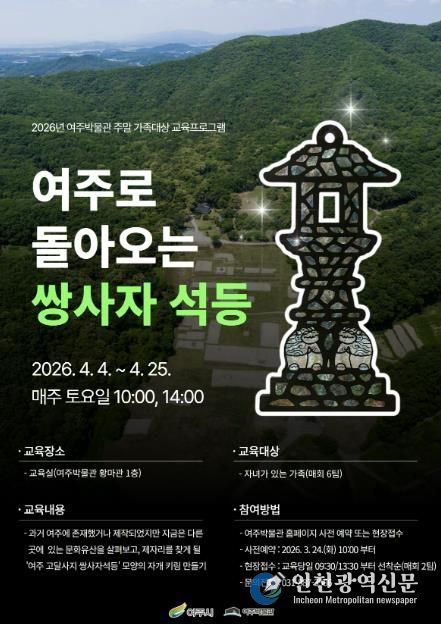 [인천광역신문] 관리자 기자 | 여주시 여주박물관은 오는 4월 주말을 맞아 가족이 함께 지역 문화유산의 가치를 배우고 체험할 수 있는 교육프로그램 '여주로 돌아오는 쌍사자 석등'을 운영한다.