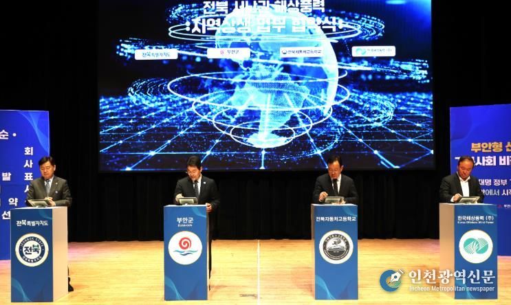 [인천광역신문] 관리자 기자 | 부안군은 18일 부안예술회관에서 열린 부안형 신바람 기본사회 비전 선포식에서 전북특별자치도, 전북자동차고등학교, 한국해상풍력(주)와 함께 전북 서남권 해상풍력 지역 상생 업무협약을 체결했다고 밝혔다.