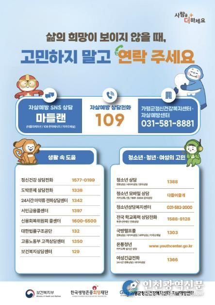 [인천광역신문] 관리자 기자 | 가평군정신건강복지센터와 자살예방센터가 봄철 자살 위험 증가에 대응해 집중 예방 활동에 나섰다.