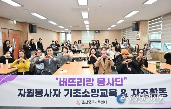 [인천광역신문] 관리자 기자 | 울산중구가족센터가 3월 18일 오전 10시 울산중구가족센터 다목적실에서 ‘버뜨리랑 자원봉사단’ 기초 소양교육 및 자조활동을 진행했다.