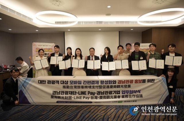 [인천광역신문] 관리자 기자 | 경남관광재단(대표이사 배종천)은 18일 대만 타이베이 루시호텔에서 현지 주요 여행사 및 간편결제 플랫폼 라인페이 대만(LINE Pay Taiwan)과 업무협약을 체결하고 대만 관광객 유치 확대에 나섰다고 밝혔다.
