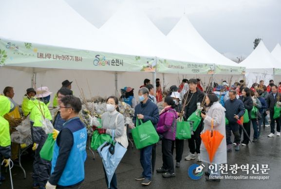[인천광역신문] 관리자 기자 | 순천시가 18일 오천그린광장 주차장에서 개최된 '내나무 나누어주기 행사'를 시민들의 높은 관심 속에 성황리에 마쳤다고 밝혔다.