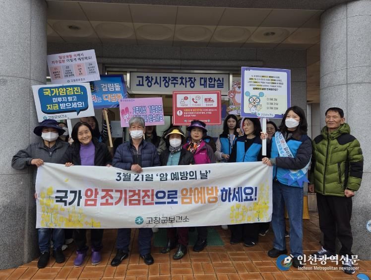 [인천광역신문] 관리자 기자 | 고창군보건소가 제19회 암 예방의 날(3월21일)을 맞아 지난 18일 고창전통시장과 고창버스터미널 일원에서 암 예방과 조기검진의 중요성을 알리는 캠페인을 실시했다.