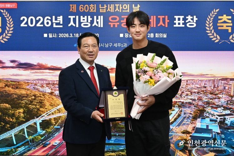 [인천광역신문] 관리자 기자 | 대구 남구는 지난 18일 제60회 납세자의 날을 맞아 지방세를 성실히 납부해 지역발전에 기여한 유공 납세자 구자욱(야구선수, 삼성라이온즈)에게 대구광역시장 표창패를 수여했다.