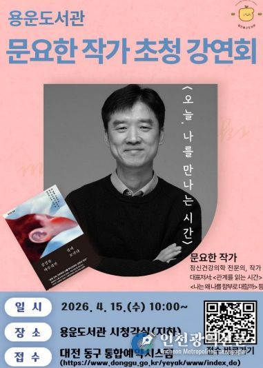 [인천광역신문] 관리자 기자 | 대전 동구는 제62회 도서관 주간 및 세계 책의 날을 맞아, ‘문요한 작가’ 초청 강연회를 개최한다고 19일 밝혔다.