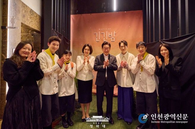 [인천광역신문] 관리자 기자 | 이재명 대통령과 김혜경 여사는 오늘 저녁 서울 대학로 링크아트센터드림에서 창작뮤지컬 '긴긴밤'을 관람하고, 출연진과 제작진을 격려했다.
