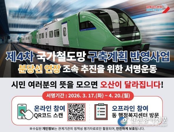 [인천광역신문] 관리자 기자 | 오산시가 분당선 연장사업 조속 추진을 위한 범시민 서명운동을 시작했다고 19일 밝혔다.
