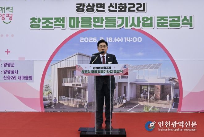 [인천광역신문] 관리자 기자 | 양평군은 지난 18일 창조적 마을만들기 사업으로 조성한 ‘신화2리 마을회관’ 준공식을 개최했다. 이날 행사에는 전진선 양평군수를 비롯해 지민희 양평군의회 부의장, 송진욱 군의원, 마을 주민 등 100여 명이 참석해 준공을 축하했다.