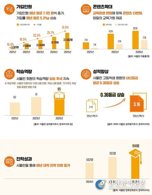 서울시 조사 결과, 올해 대학에 합격한 서울런 학생 914명 중 주요 대학‧학과 합격자는 전년 대비 21%(2025년 63명→ 2026년 76명) 늘어난 것으로 나타났다.