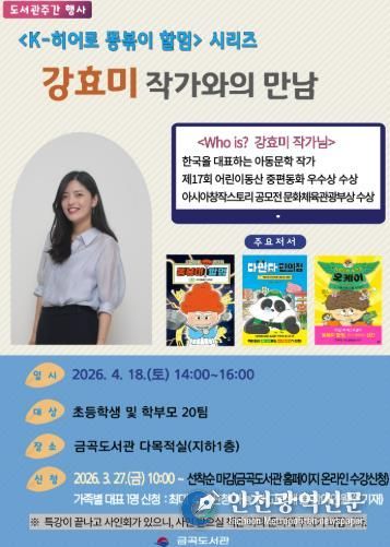 [인천광역신문] 관리자 기자 | 부산 북구는 제62회 도서관주간을 맞아 4월 18일 오후 2시, 금곡도서관에서 인기 동화 'K-히어로 똥볶이 할멈'의 저자 강효미 작가를 초청해 ‘작가와의 만남’을 개최한다고 밝혔다.