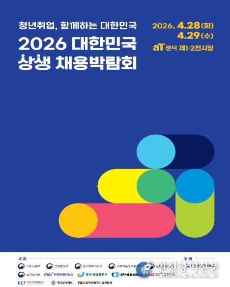 [인천광역신문] 관리자 기자 | 고용노동부는 관계부처 및 한국경제인협회 등 경제단체와 공동으로 오는 4월 28일과 29일, 서울 양재 aT센터에서'2026 대한민국 상생 채용박람회'를 개최한다.