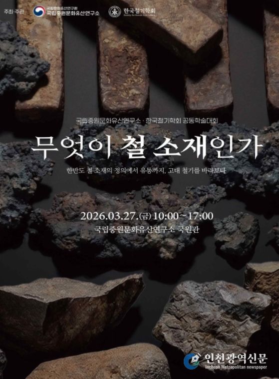 [인천광역신문] 관리자 기자 | 국가유산청 국립문화유산연구원 국립중원문화유산연구소는 한국철기학회와 함께 2026년 3월 27일 오전 10시 국립중원문화유산연구소 국원관에서『무엇이 철 소재인가?』를 주제로 공동 학술대회를 개최한다.