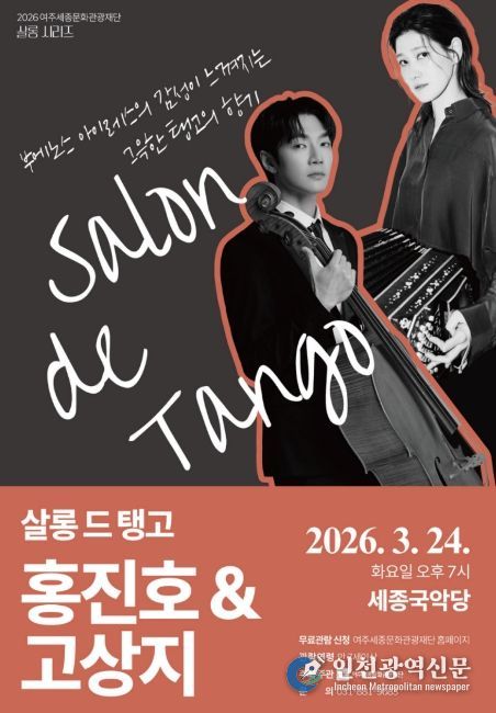 [인천광역신문] 관리자 기자 | 여주세종문화관광재단이 오는 3월 24일, 문화가 있는 날 사업으로 첼로와 반도네온, 피아노가 어우러진 특별한 공연 '살롱 드 탱고 : 홍진호 & 고상지'를 선보인다.