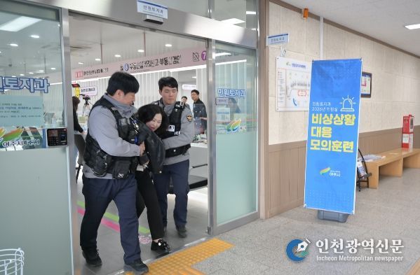 [인천광역신문] 관리자 기자 | 여주시는 19일 민원토지과에서 여주경찰서와 함께 ‘민원실 비상 상황 대응 모의훈련’을 실시했다.