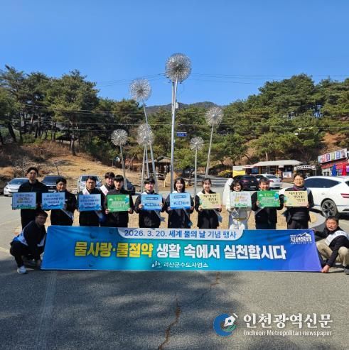 [인천광역신문] 관리자 기자 | 충북 괴산군 수도사업소는 ‘세계 물의 날(3월 22일)’을 맞아 20일 괴산시외버스터미널과 산막이옛길 일원에서 수도사업소 직원들과 수자원공사 등 30여 명이 ‘물 아껴 쓰기’ 캠페인을 펼쳤다고 밝혔다.