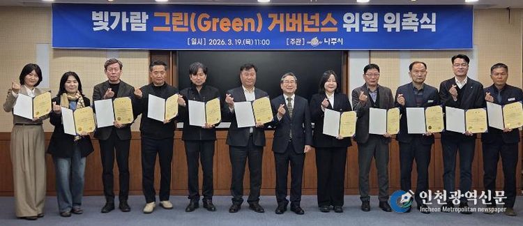 나주시는 지난 19일 시청 이화실에서 빛가람혁신도시의 체계적인 공원 환경 조성과 효율적인 녹지 관리를 위한 ‘빛가람 그린거버넌스’ 재구성 위촉식을 개최했다고 20일 밝혔다.