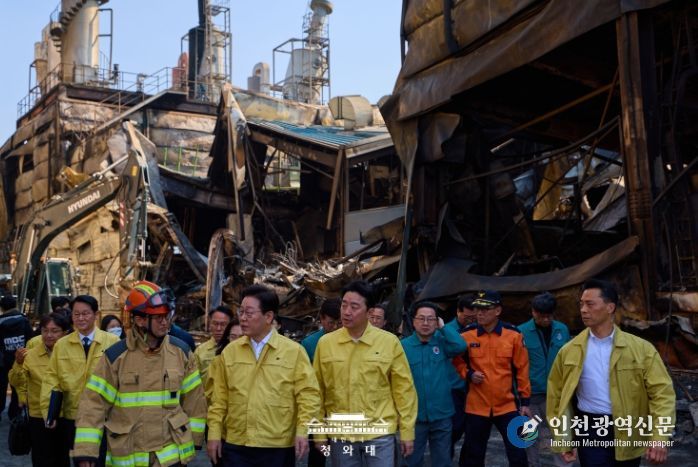 [인천광역신문] 관리자 기자 | 이재명 대통령은 21일 오후, 20일 대전 대덕구에서 발생한 안전공업 화재 현장을 찾아 피해 상황과 구조활동 전반을 점검하고, 유가족들의 목소리를 청취했다.