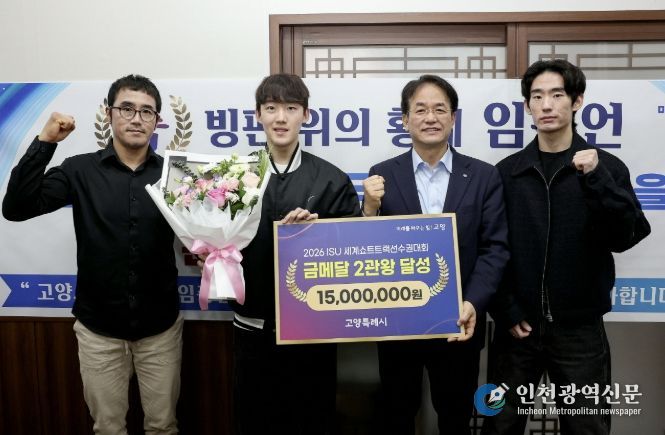 [인천광역신문] 관리자 기자 | 고양특례시는 캐나다 몬트리올에서 열린 ‘2026 ISU 세계 쇼트트랙 선수권대회’에서 개인전 2관왕을 달성하며 세계 최정상의 기량을 입증한 빙상팀 임종언 선수를 지난 23일 초청해 격려 오찬·간담회를 진행했다.
