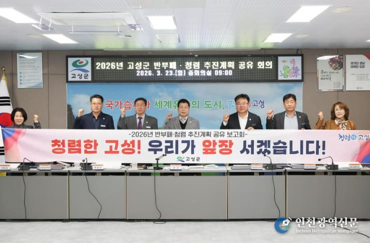 [인천광역신문] 관리자 기자 | 고성군은 3월 23일 군청 중회의실에서 군수 주재로 국장 및 부서장 등 간부공무원들이 참석한 가운데 ‘2026년 반부패·청렴 추진계획 공유 회의’를 개최했다고 밝혔다.