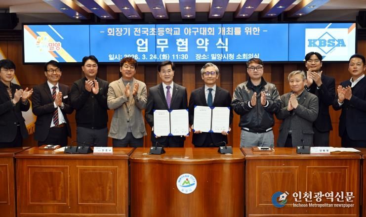 [인천광역신문] 관리자 기자 | 경남 밀양시는 24일 시청 소회의실에서 대한야구소프트볼협회와 ‘회장기 전국초등학교 야구대회’의 성공적인 개최를 위한 업무협약을 체결했다.