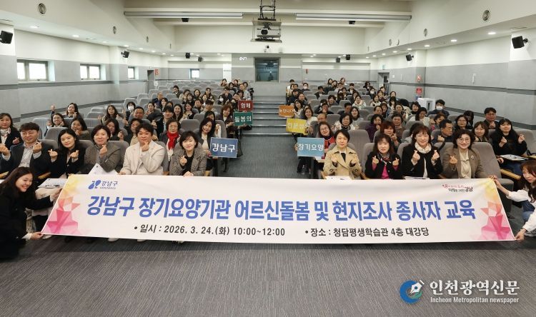 [인천광역신문] 관리자 기자 | 꿈이 모이는 도시, 미래를 그리는 강남구(구청장 조성명)가 3월 24일 청담평생학습관에서 관내 재가장기요양기관장과 종사자 130여 명이 참석한 가운데 ‘2026년 장기요양기관 어르신 돌봄 및 부당청구 예방 교육’을 실시했다.